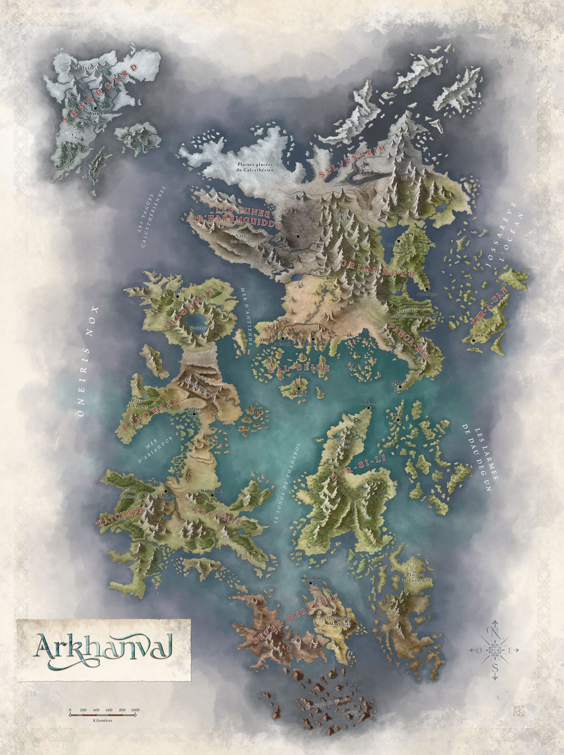 Le monde que vous allez fouler de vos pas est riche en surprises. Explorer Arkhanval peut être aussi gratifiant que dangereux. À l’époque où se déroule le jeu, le Troisième Âge, les personnages peuvent croiser toutes sortes de créatures insensées ou d’individus hauts en couleur. Peut-être même feront-ils partie de ces égarés que leurs rêves auront transportés sur cette terre de magie. C’est donc tout un espace de défis, de démesure et d’imprévus qui s’ouvrent sous les pas des aventuriers qu’incarneront les joueurs.